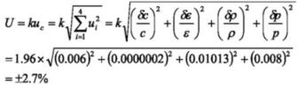由此可見,當所用差壓計的精度為0.5級,量程為0~600kpa,預(yù)設(shè)差壓測景值為300kpa時,對于天然氣孔板流景計,置信概率為95%的測量總不確定度為: