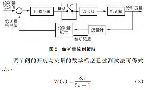 以式(3)為基礎(chǔ),對給礦量進(jìn)行 PI調(diào)節(jié),實時控制調(diào)節(jié)閥的開度,并對給礦量進(jìn)行精確控制。