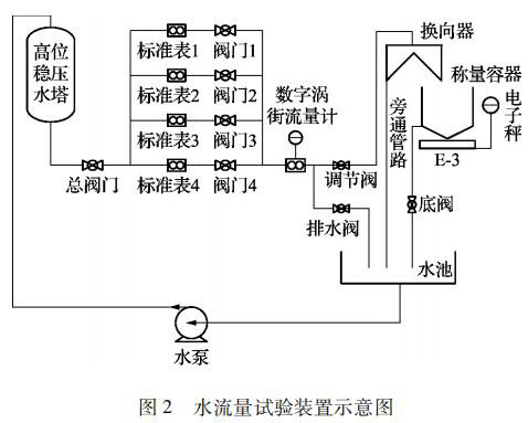 在試驗裝置管路出口處裝有換向器,用來改變流體的流向,使水流入稱量容器或者旁通管路而不改變流量。換向器啟動時,觸發(fā)計時控制器,以保證水的重量和時間的同步測量。