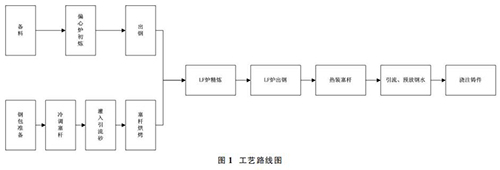1.1 偏心爐+LF 爐雙聯(lián)冶煉工藝,鋼包冷調(diào)、熱裝飽和蒸汽流量計(jì)工藝路線圖簡介如圖 1。