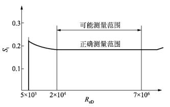 就多數(shù)蒸汽流量計而言,管道雷諾數(shù) R eD 在2 ×10 4 ~ 7 × 10 6 范圍內(nèi),斯特勞哈爾數(shù) S t 可看做常數(shù),在此區(qū)間可保證測量精度。斯特勞哈爾數(shù)S t 是蒸汽流量計的重要系數(shù)。如圖 2 所示,曲線S t ≈0. 17 時,旋渦頻率與流速成正比。