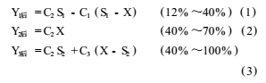 其中:Y1后、Y2后、Y3后分別為修正后*一段、*二段、*三段的流量指示值;X為隨機定量給出的實際流量值;S1、S2分別為段間流量的當量值,即:未乘系數(shù)時的當量流量。