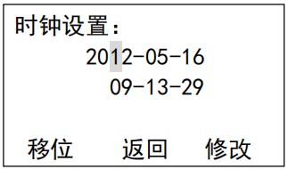 設(shè)置界面 13: 時(shí)鐘設(shè)置,校準(zhǔn)當(dāng)前運(yùn)行的日期和時(shí)間,此參數(shù)出廠時(shí)已校準(zhǔn),設(shè)置影響記錄的保存和查詢,在運(yùn)行前務(wù)必確認(rèn)是正確的當(dāng)前日期,如錯(cuò)誤將造成記錄保存的混亂。