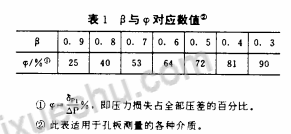 當知道直徑比β時,可由表1直接查出孔板不可恢復壓力損失δp1=ψ△P,免得用公式