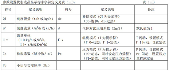 工作狀態(tài)液晶顯示標(biāo)志字符定義見表(二):