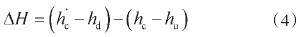 式中,ΔH為增加的有效功,kJ/kg;hc為風(fēng)機前有節(jié)流孔板時,氣體等熵壓縮至出口壓力pc對應(yīng)的焓值,kJ/kg;hc為風(fēng)機前無節(jié)流孔板時,氣體等熵壓縮至出氣壓力;pc為對應(yīng)的焓值,kJ/kg;pc為風(fēng)機出口壓力,Pa。