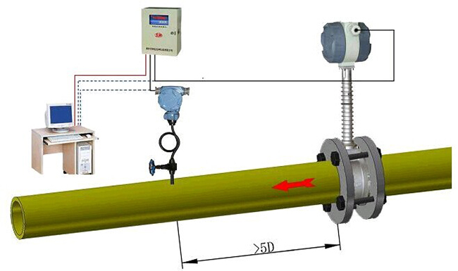 注:調(diào)節(jié)閥盡可能不安裝在渦街流量?jī)x表的上游,而應(yīng)安裝在渦街流量?jī)x表的下游10D處。