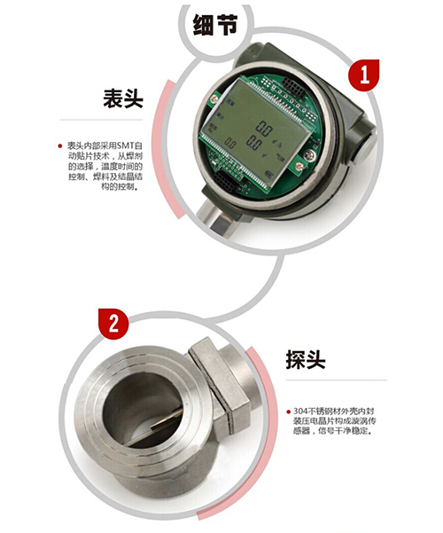 這些交替變化的旋渦就形成了一系列交替變化的負(fù)壓力,該壓力作用在檢測(cè)探頭上,便產(chǎn)生一系列交變電信號(hào),經(jīng)過前置放大器轉(zhuǎn)換、整形、放大處理后,輸出與旋渦同步成正比的脈沖頻率信號(hào)或標(biāo)準(zhǔn)信號(hào)。
