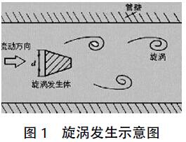 渦街流量計利用卡門渦街原理。在流體中安放旋渦發(fā)生體,流體在旋渦發(fā)生體下游兩側(cè)交替地分離釋放出兩列有規(guī)律的交錯排列的旋渦,在一定雷諾數(shù)范圍內(nèi),該渦街的頻率與旋渦發(fā)生體的幾何尺寸,管道的幾何尺寸有關,旋渦的頻率正比于流量,此頻率可由探頭檢出。