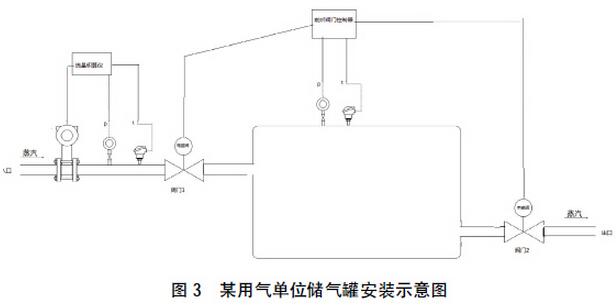 上圖這個系統(tǒng)中,閥門控制器根據(jù)罐內(nèi)壓力來自動控制閥門一,閥門二的開閉。這兩個閥門為電磁閥,開閉的執(zhí)行時間非常短暫。當儲氣罐為空,即壓力接近常壓時,閥門一打開,蒸汽由入口放入進入充氣階段,流量計開始計量,儲氣罐內(nèi)壓力上升到某點后,儲氣罐充滿,閥門一關閉,蒸汽渦街流量計停止計量,閥門二打開,蒸汽由閥門二出口處排出到生產(chǎn)部門,儲氣罐排空后作如上循環(huán)工作。